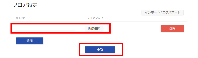 フロア設定の[追加]をクリックすると、新たなフロア追加行が表示されますので、任意のフロア名を入力します。