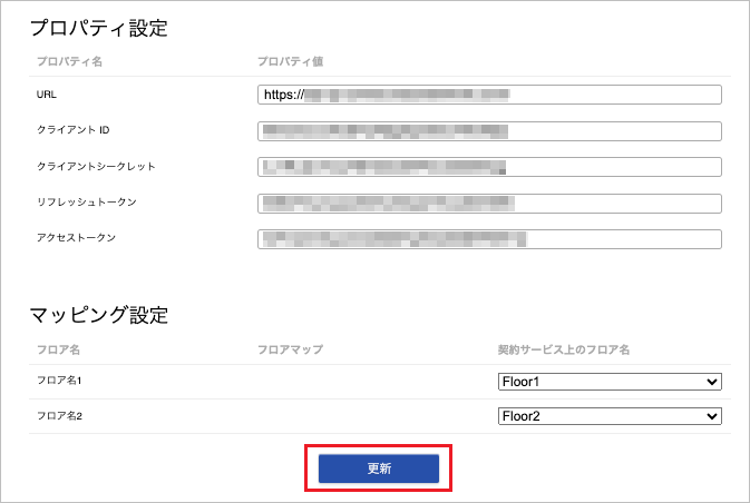 「マッピング設定」で、「フロア設定」に追加したフロア名とCisco CMXに登録されているフロア名を紐付け、[更新]をクリックします。