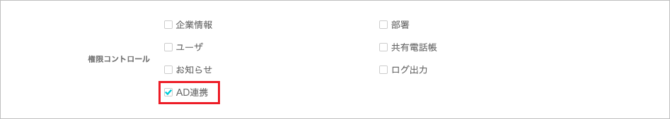 [基本情報]タブ>権限コントロール「AD連携」にチェックを入れます。