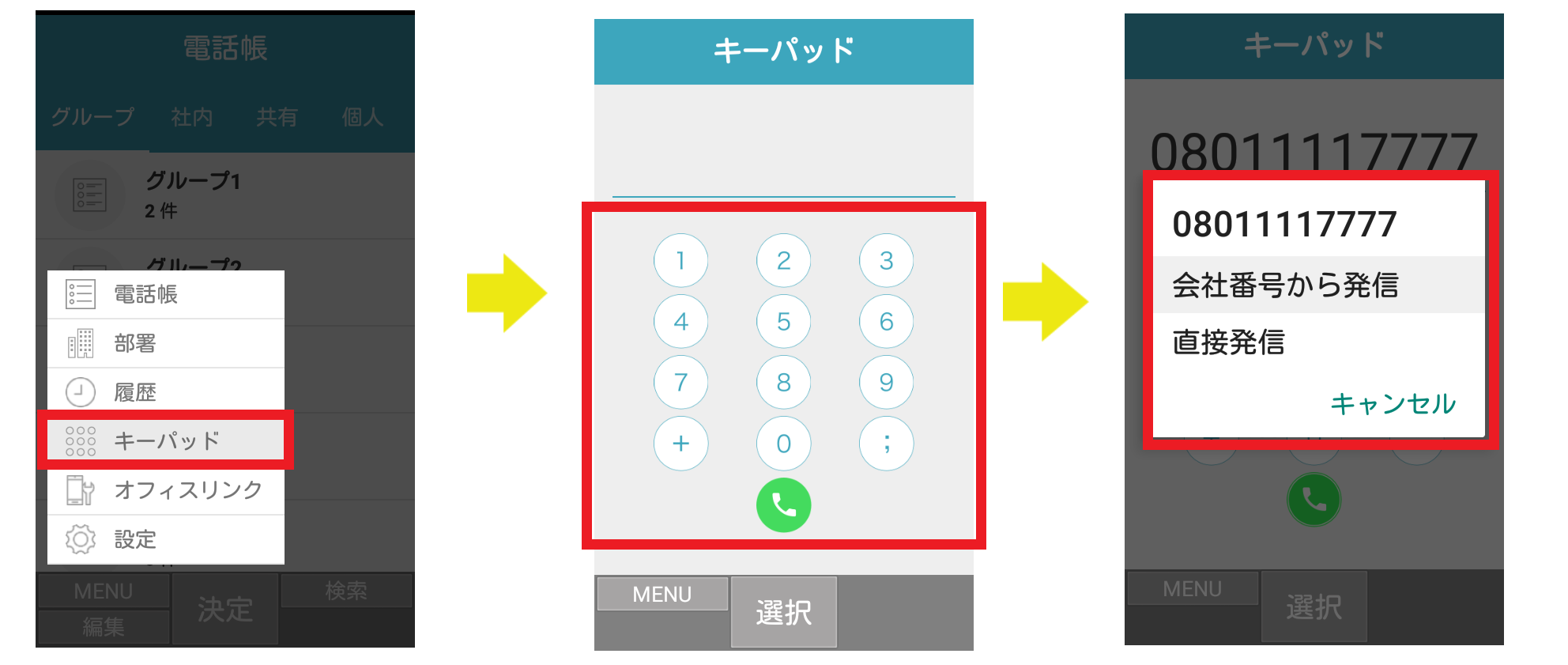 他電話アプリと併用した場合、オフィスリンク+ ドコモ ケータイ(spモード)アプリが正常に動作しない可能性があります。