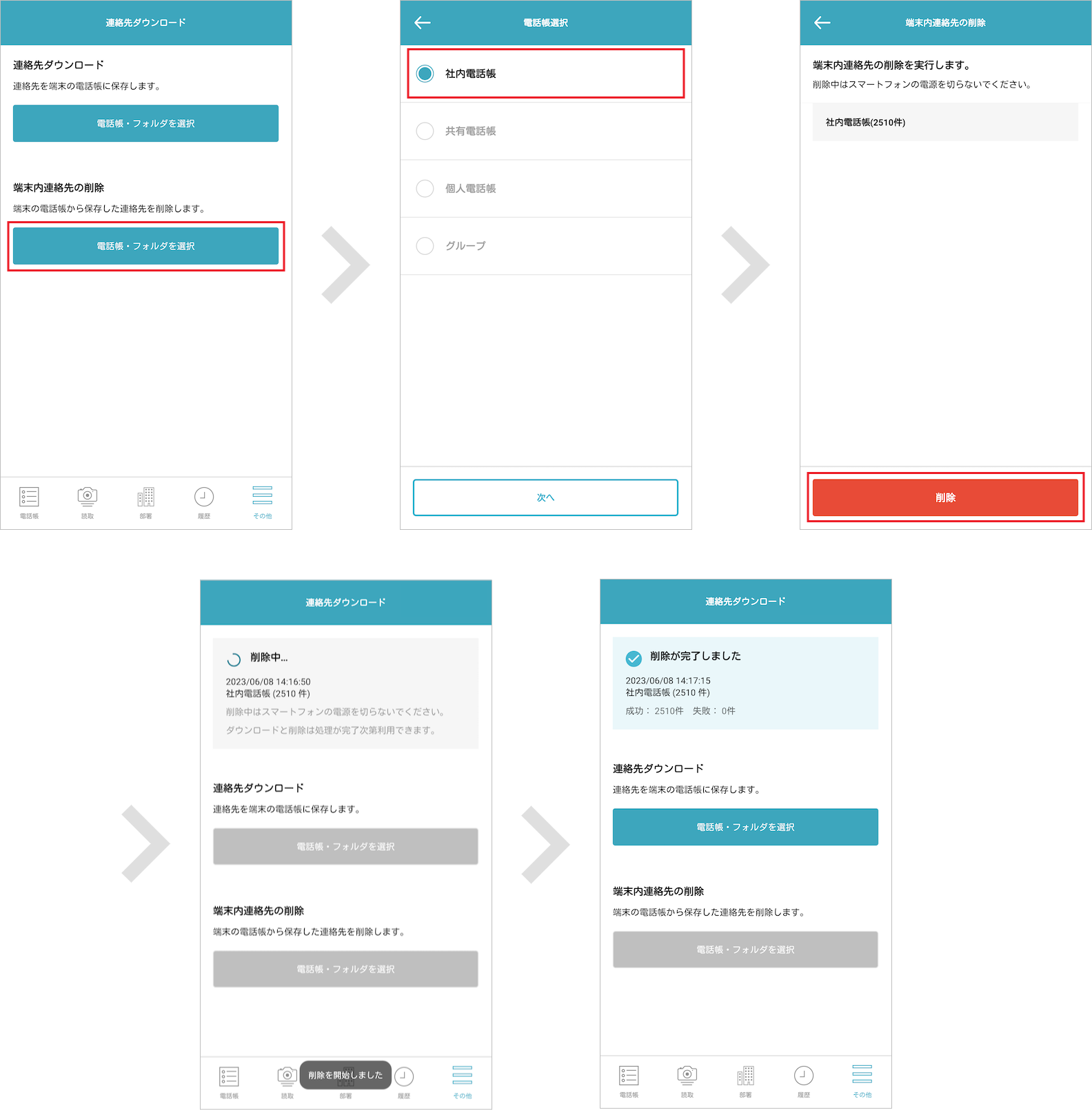 連絡先をダウンロードする 注意事項を一部削除 |