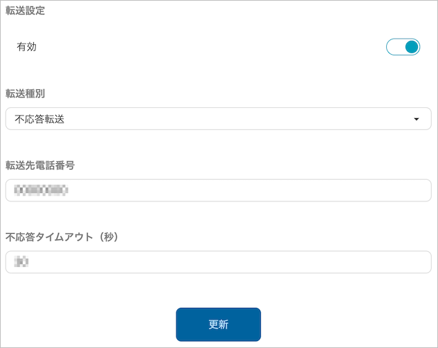 「転送先電話番号」に着信を転送したい番号を入力します。
