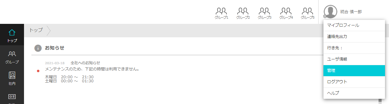 ※右上のユーザ名>[社内電話帳編集]から設定します。
